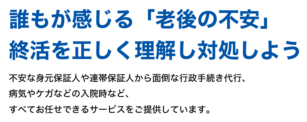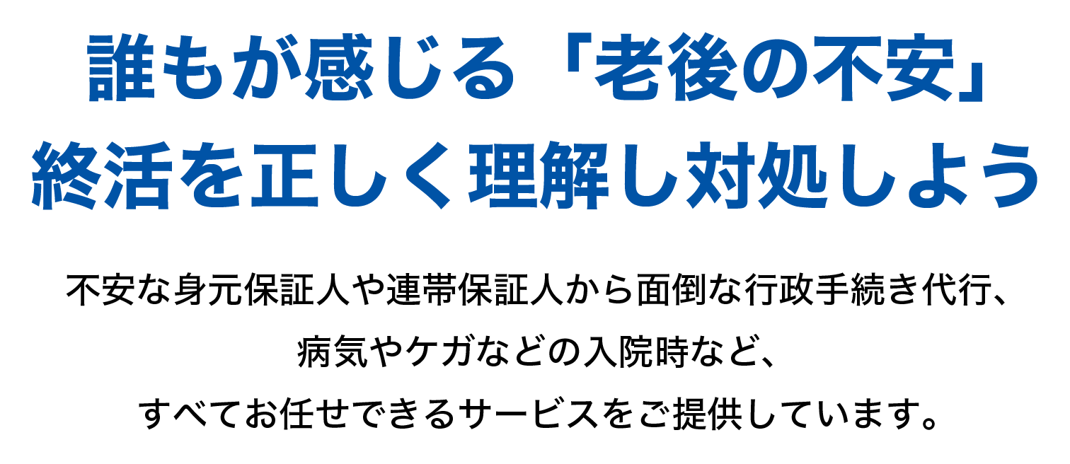 入院、施設入居時の身元保証や連帯保証を求められていて用意ができないなど、不安な方にご安心頂けるプラン |